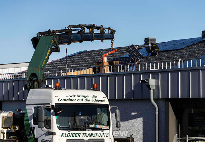 Ein zentraler Baustein ist unsere eigene Photovoltaikanlage auf den Dächern, die eine Leistung von 1,3 MW erzeugt und einen großen Teil des benötigten Stroms für den Betrieb liefert. Dieser selbst erzeugte Solarstrom wird dort genutzt, wo er entsteht – zum Beispiel für die Ladeinfrastruktur, die Beleuchtung und andere elektrische Systeme vor Ort.